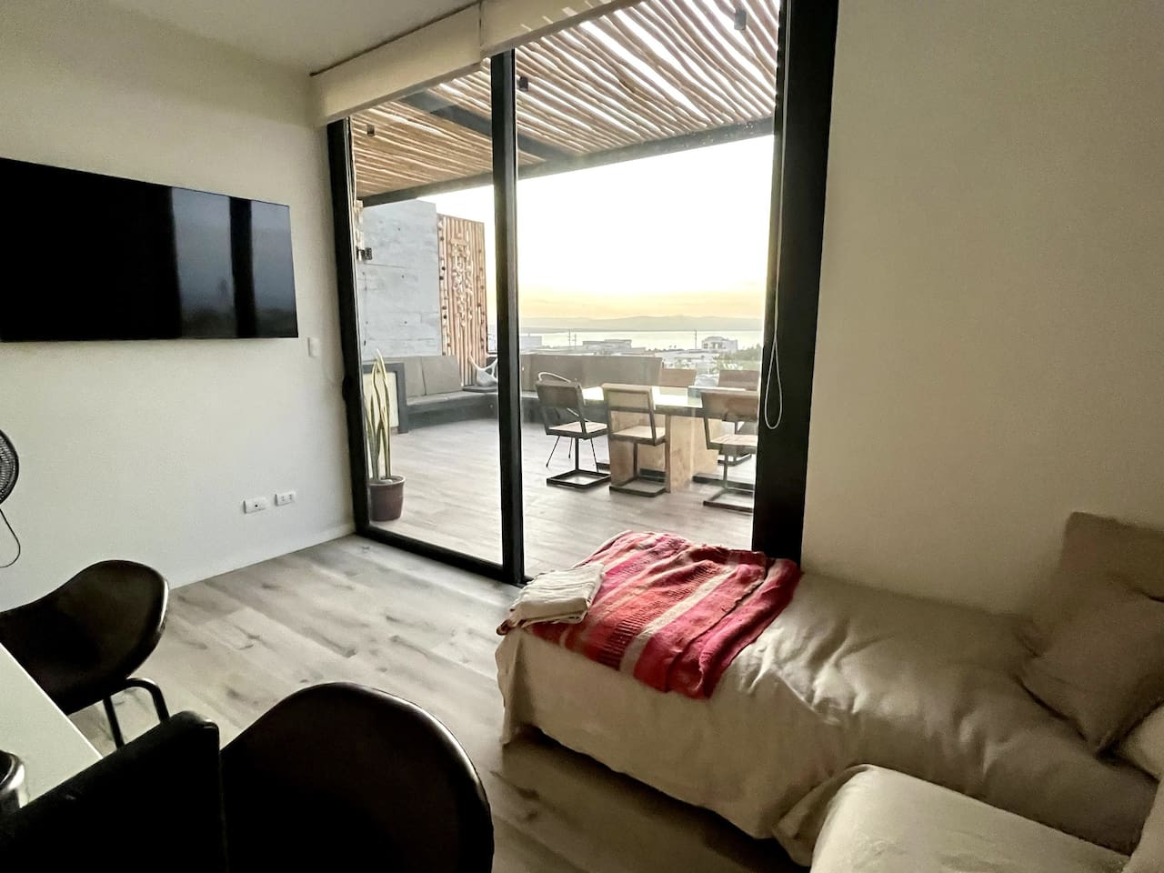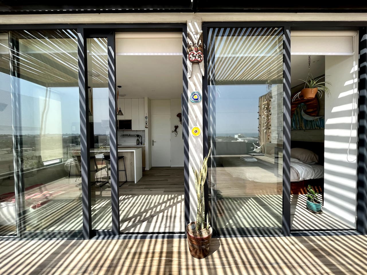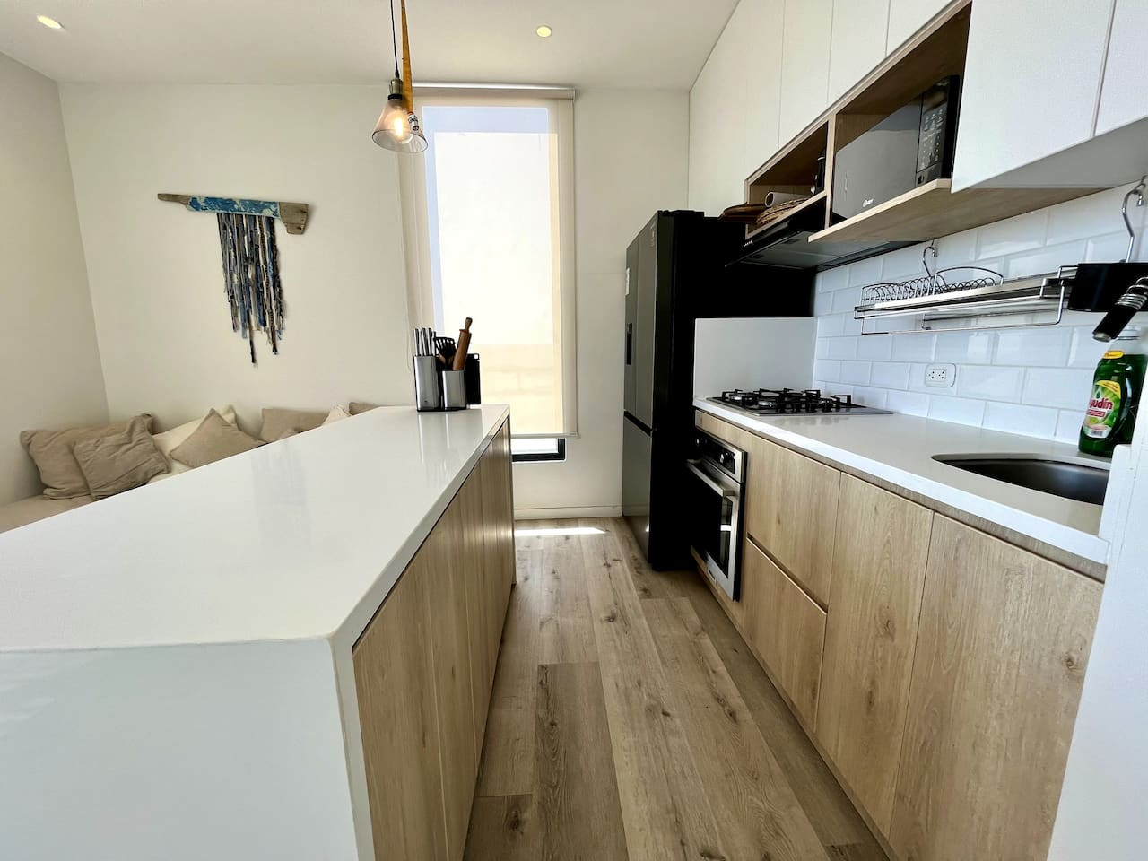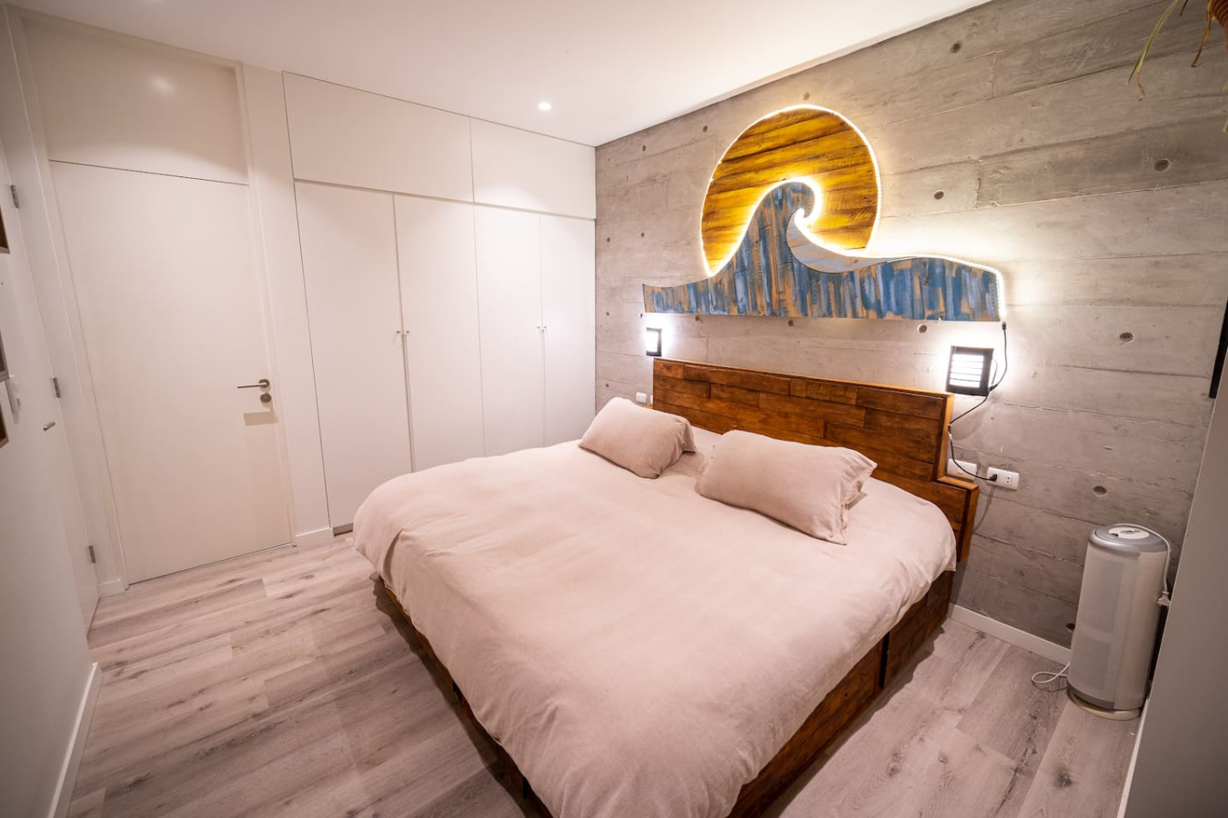 / nightDesigned for singles & couples, this unique apartment suits kitesurfers, fitness lovers, and remote workers. Personal touches abound, with the owner handcrafting most furniture and decor. Top-floor(4th) location with a stunning rooftop terrace for ocean & National Reserve views. Fully stocked kitchen, comfy king bed, BBQ, ourdoor garden & fiber optic internet. 5min walk to Kite Point, 1km to Paracas National Park. Onsite coworking & gym facilities. Perfect for long-term stays. he apartment is modern, built in 2021 and comes with more than necessary amenities. You can expect to rent for a weekend and want to stay a month! Please note that this unit is located on the 4th floor, without an elevator, but the breathtaking views make the climb worth every step! The apartment offers ample outdoor terrace space, allowing you to fully embrace the beauty of Paracas. Inside, you'll find an open kitchen and living area, a bedroom with generous closet space, a bathroom with desert views, and a washing machine just before entering. Most notably, the rooftop terrace provides stunning vistas of the National Reserve and the ocean. A combo charcoal grill and smoker is on the terrace for guests to enjoy delicious outdoor cooking while watching the stunning sunsets. Our community is the home to many kite surfers and sports enthusiasts, creating a vibrant atmosphere. Guests can step out of the apartment and reach the entrance of the National Park (Reserva Nacional de Paracas) in just 1.3km, perfect for morning runs or bike rides within the reserve. Afterwards, take a refreshing swim in the 40m saltwater lagoon or enjoy a dip in the pool. The common areas and the community itself contribute to the unique experience of staying in this apartment. Notably, this unit is environmentally friendly, featuring handmade furniture, decor, and a bohemian vibe. It is also the most economical option in Aldea, so take advantage of this exceptional value! From April 15, 2024, to April 15, 2025, there will be a construction project taking place within the condominium. While there may be some noise during business hours, all common areas will remain fully accessible. To thank you for your patience, we are offering a special discounted rate during this period. We appreciate your understanding!