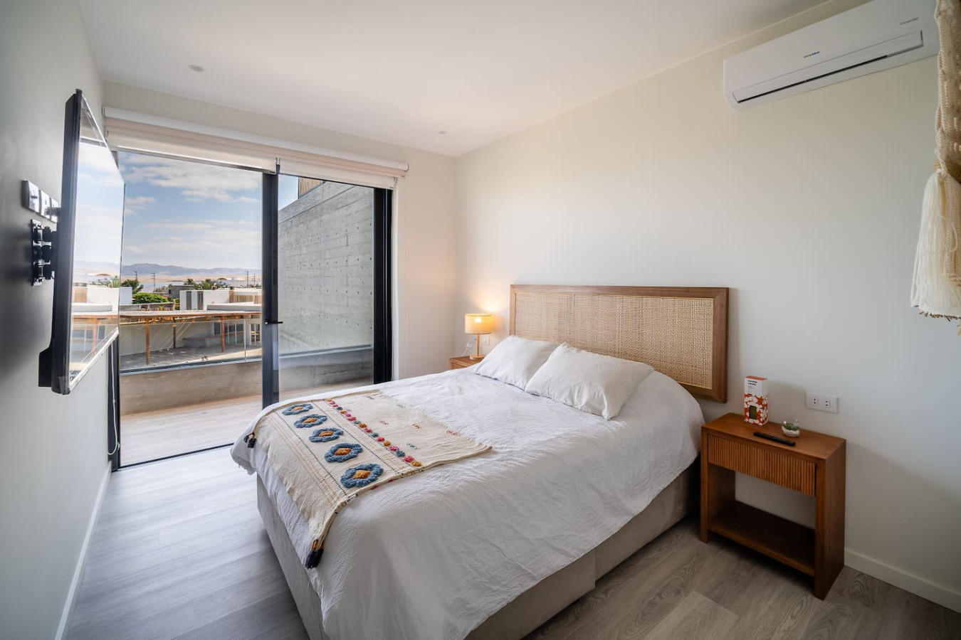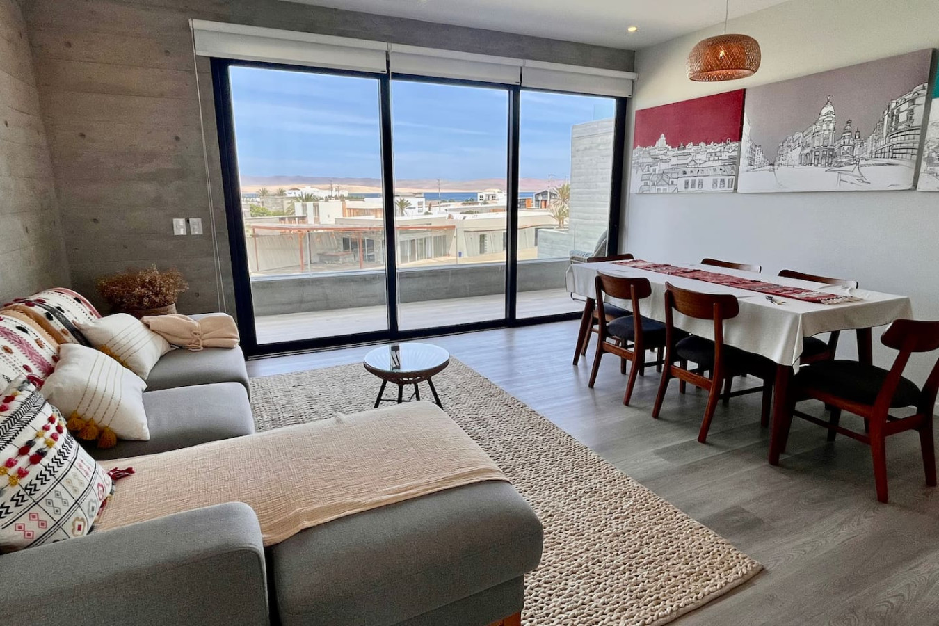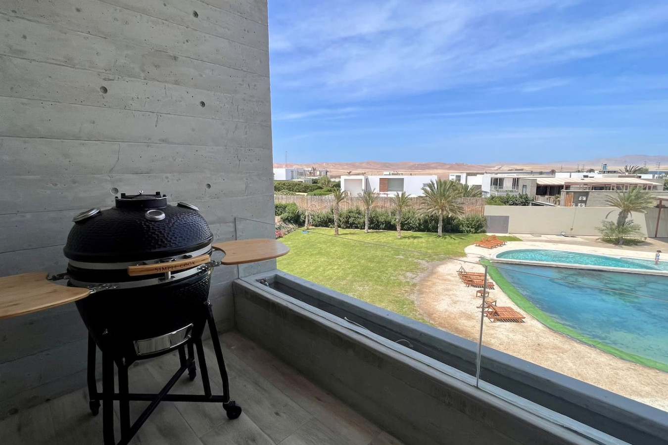 / nightWelcome to the 2BR Ocean View apt with 4 beds, 2 bathrooms, and can comfortably host up to 6 people. Located in the sports meca of Paracas, with access to a shared gym, coworking, 40m lagoon and swimming pools. The master suite features a walk-in closet and ensuite bathroom. The second bedroom offers a Queen bed + 2 additional beds ideal for kids. The kitchen is fully equipped and a 22inch Kamado awaits on the terrace for your grilling needs! The living room and dining area are open, looking out over the ocean, with direct access to the terrace. The kitchen is quite large and fully stocked. There are two bedrooms and two bathrooms. The master has a queen bed, walk-in closet, and ensuite bathroom. The second bedroom has a queen and two 1.5 plaza beds, ideal for children. The second bathroom includes a shower and is across from the second bedroom. The unit is on the third floor, please note there is no elevator, but the views are worth the walk! The unit is located in a safe and convenient condominium, built in 2023, just a 5-minute walk from the kite point and only 1.3km to the entrance to Paracas National Reserve. The common areas include a large gym and a coworking space, so you can stay productive and active during your stay,. The entire unit is private for guests. There are shared areas outside of the unit, within the condo complex, that form part of Kite Club. These common spaces include a full gym, coworking, 40m lagoon and fresh water pools. They are to be enjoyed at anytime during your stay! Santo Domingo is the relaxed, sports-enthusiast area of Paracas. The center of Paracas is more touristy, but in Santo Domingo, you have easy access to the ocean for kitesurfing and to the nature reserve, la Reserva, for running and biking. From April 15, 2024, to April 15, 2025, there will be a construction project taking place within the condominium. While there may be some noise during business hours, all common areas will remain fully accessible. To thank you for your patience, we are offering a special discounted rate during this period. We appreciate your understanding!
