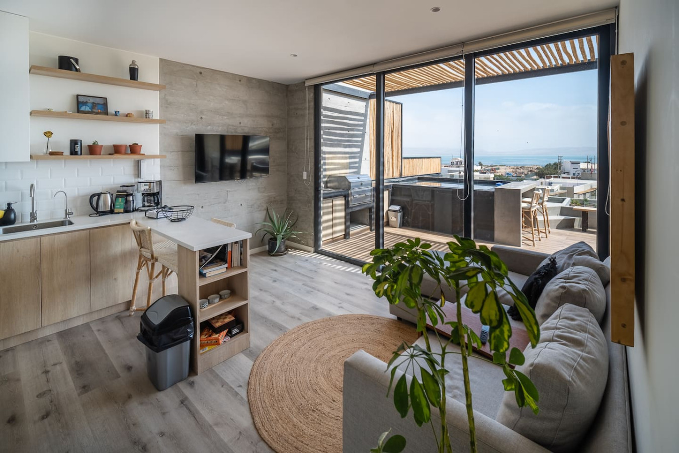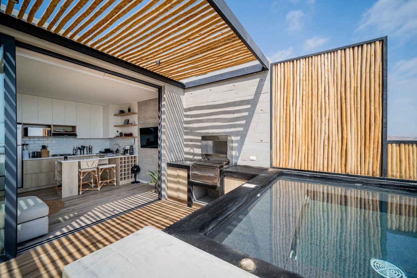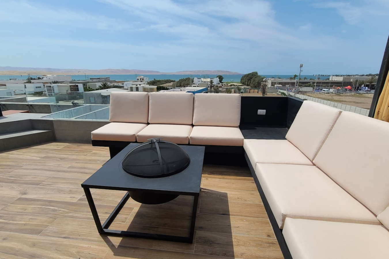 / nightGet ready for a romantic getaway at our Paracas Penthouse! Enjoy a private pool (not heated), a large terrace with BBQ, and beautiful ocean views. Built at the end of 2021, this modern condo offers ample amenities, including a fully stocked kitchen, comfy king bed, Smart TV, fast internet, A/C & more! A workation place for kitesurfers, triathletes, fitness lovers & nomads. Just a 5-minute walk to the Kite Point & next to Paracas National Park. On-site Coworking & Gym. Long stays welcome! Experience pure luxury at this stunning apartment. From the stylish Crate and Barrel sofa to the top-of-the-line Rosen mattress and hand-created piece of wood art made by a talented Peruvian artist, every detail has been carefully chosen to provide a truly intimate stay. Disconnect from the world and unwind by the refreshing pool while enjoying the mesmerizing ocean view. The beautiful garden adds to your tranquil stay. The fully equipped kitchen and high-quality linens ensure convenience and comfort. You can even enjoy a shower with a view of the National Reserve! This is a very special unit to rent. From April 15, 2024, to April 15, 2025, there will be a construction project taking place within the condominium. While there may be some noise during business hours, all common areas will remain fully accessible. To thank you for your patience, we are offering a special discounted rate during this period. We appreciate your understanding!