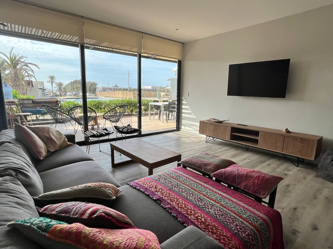 / nightThis 2 Bedrooms / 2 Bathrooms unit is perfect for kitesurfers, triathletes, fitness enthusiasts, nomads, and families looking to vacation or work remotely. Located 5min walking from the Kite Surf Point & 1km from Paracas National Park. This unit features a fully stocked kitchen, indoor + outdoor dining, a BBQ, 2 bedrooms, & a laundry room. The Master has a King & ensuite bathroom. The 2nd room has a Queen + 2 bunk beds, ideal for kids. There is fast fiber internet, a 55" TV, & lastly, we are pet friendly! Guests can see the layout in the picture description. This unit differs from other units as it is on the first floor, and has grass areas in the front, ideal for relaxing or letting your pet roam outside without being in the common areas. It also has a fun surfer vibe, as the owners love kitesurfing! From April 15, 2024, to April 15, 2025, there will be a construction project taking place within the condominium. While there may be some noise during business hours, all common areas will remain fully accessible. To thank you for your patience, we are offering a special discounted rate during this period. We appreciate your understanding!