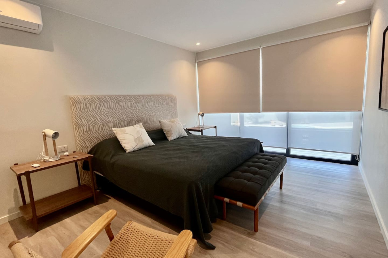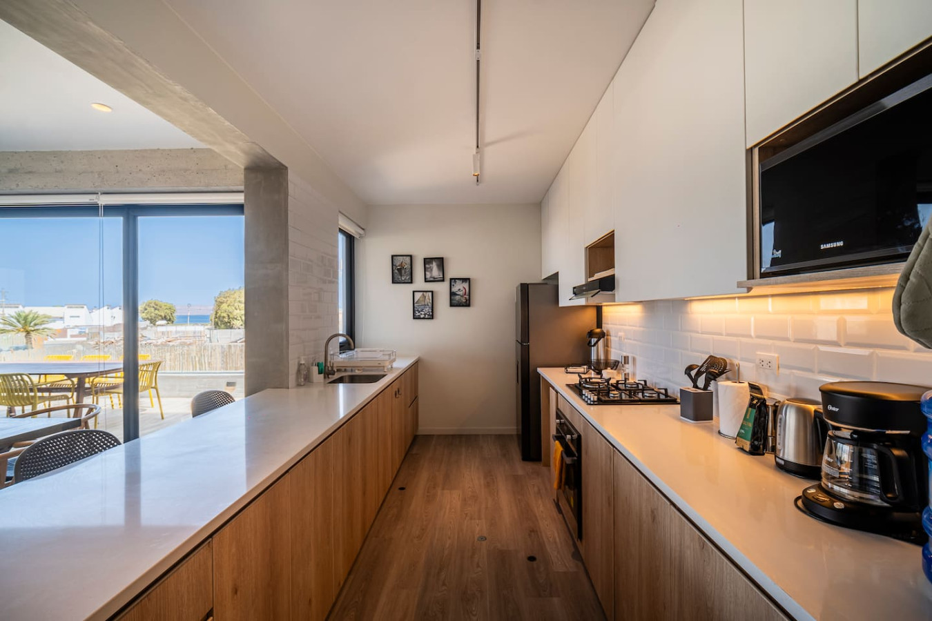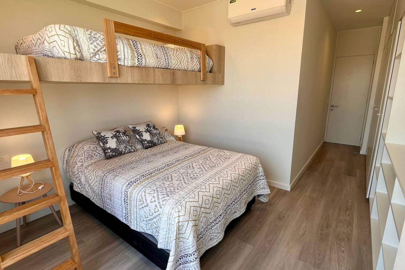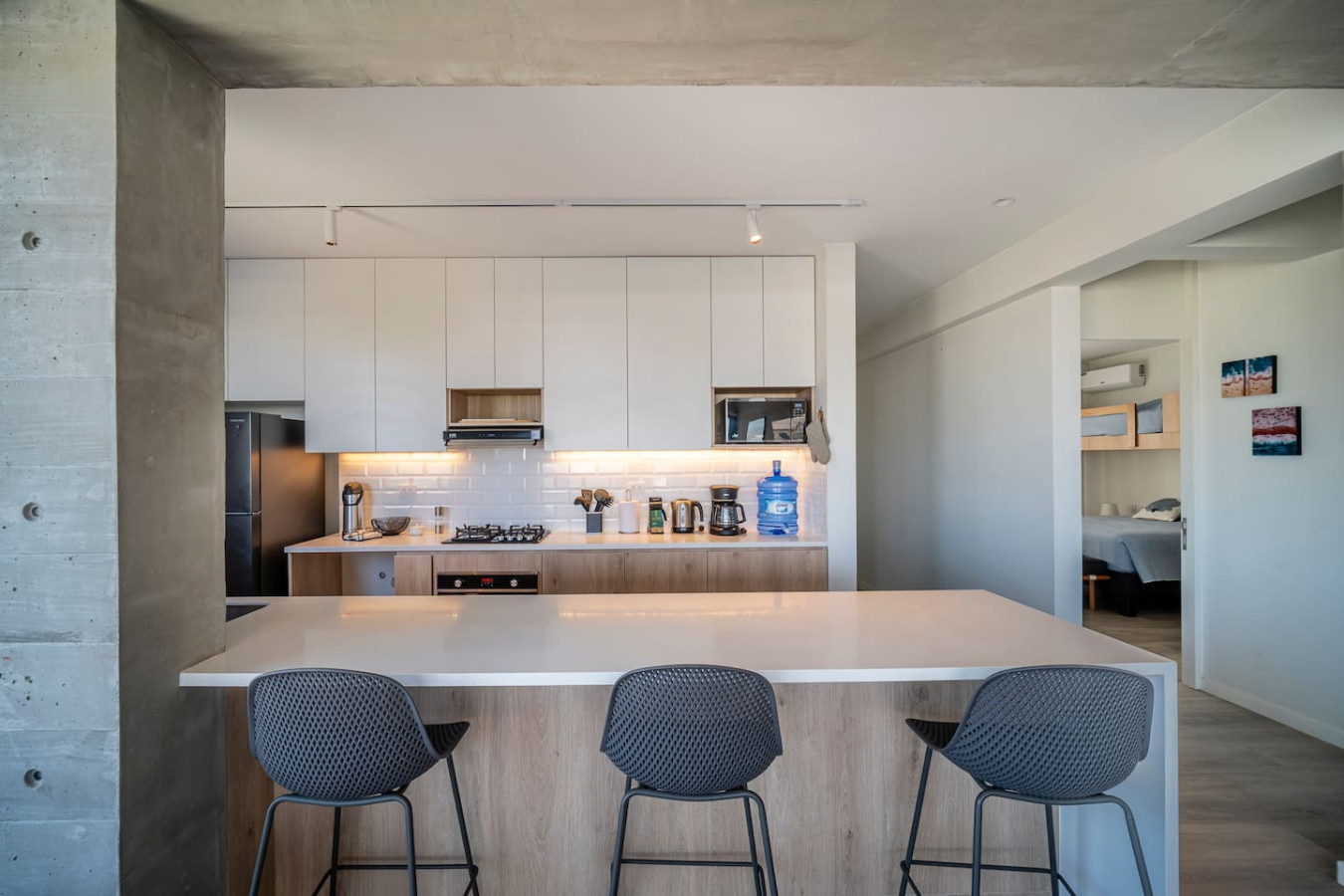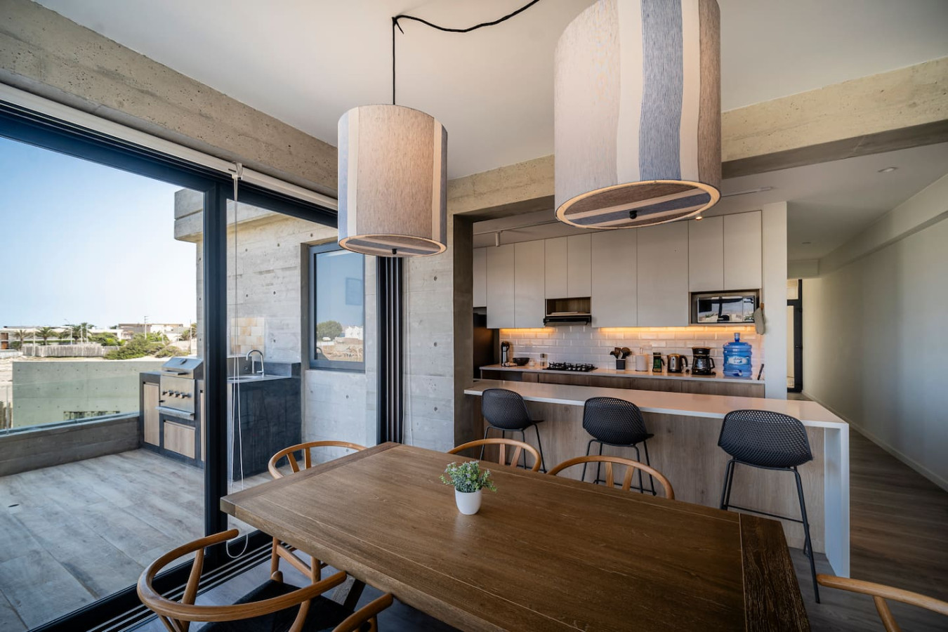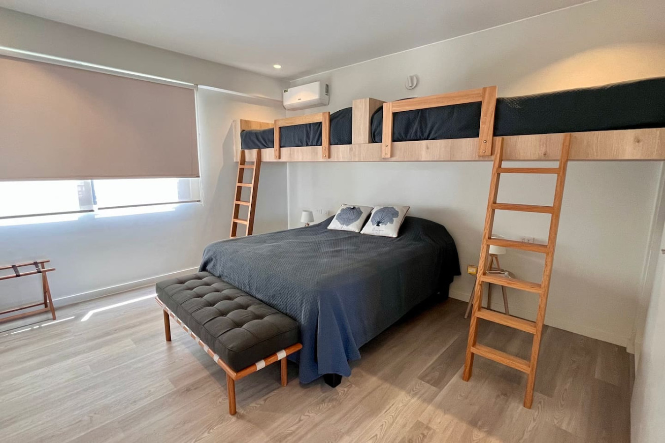 / nightBuilt in 2023, this brand new unit is a gem because if its giant terrace corner terrace with open windows bringing the desert and ocean vibes inside. One of the largest condos in the building, this unit can comfortaby fit up to 9 adults, or 11 people including the service room. Time to gather the fam and head to Paracas! It is also located at Kite Club Paracas, which offers guests full access to shared amenities including: a gym, lagoon, shared swimming pools and coworking space. The living room and terrace are huge, and connect the indoor and outdoor space for ease of BBQing and relaxing to watch the incredible sunsets. The main bedroom has a King bed + ensuite bathroom, the second bedroom offers a Queen bed and two individual beds, and the 3rd bedroom has a double bed and a single bed in addition to its ensuite bathroom. The maid's quarters can be used for a nanny or for kids, it does have a toilet and shower but please note this space is not accommodating for 2 grown adults, which is why we limit the occupancy to 9 adults max. The unit is located on the second floor, in a corner space, closest to the ocean. It had top furnishings and special attention to detail. From April 15, 2024, to April 15, 2025, there will be a construction project taking place within the condominium. While there may be some noise during business hours, all common areas will remain fully accessible. To thank you for your patience, we are offering a special discounted rate during this period. We appreciate your understanding!