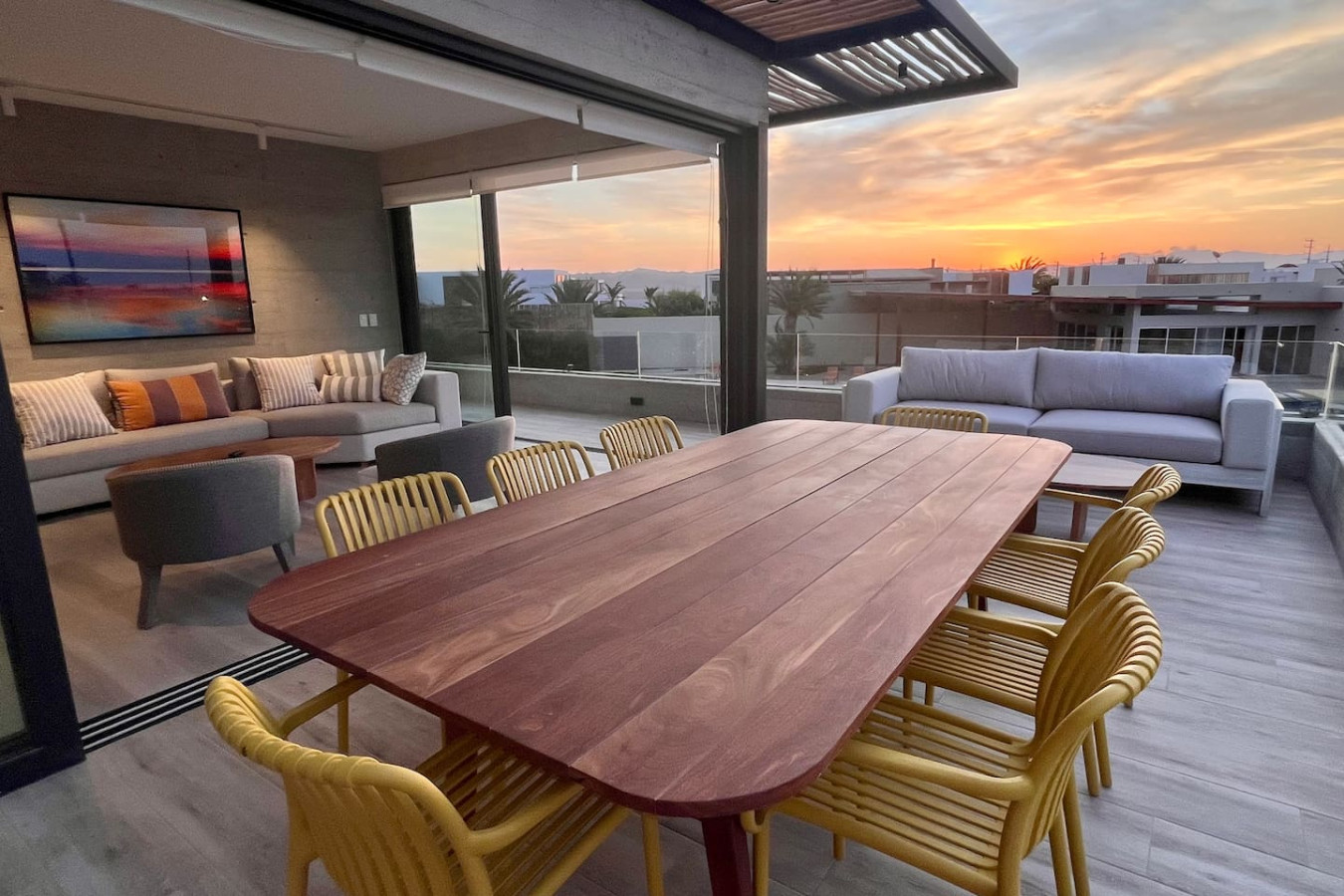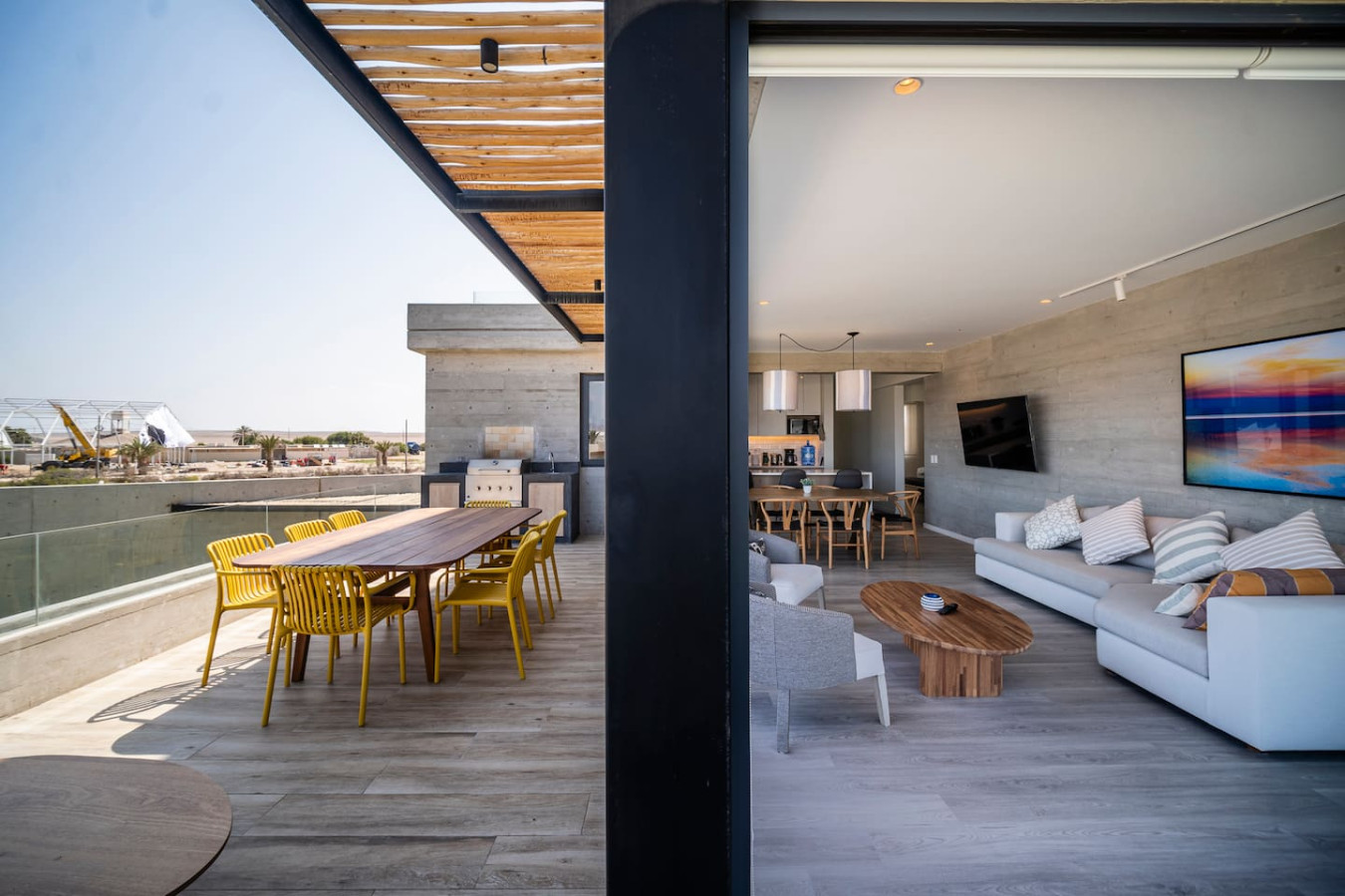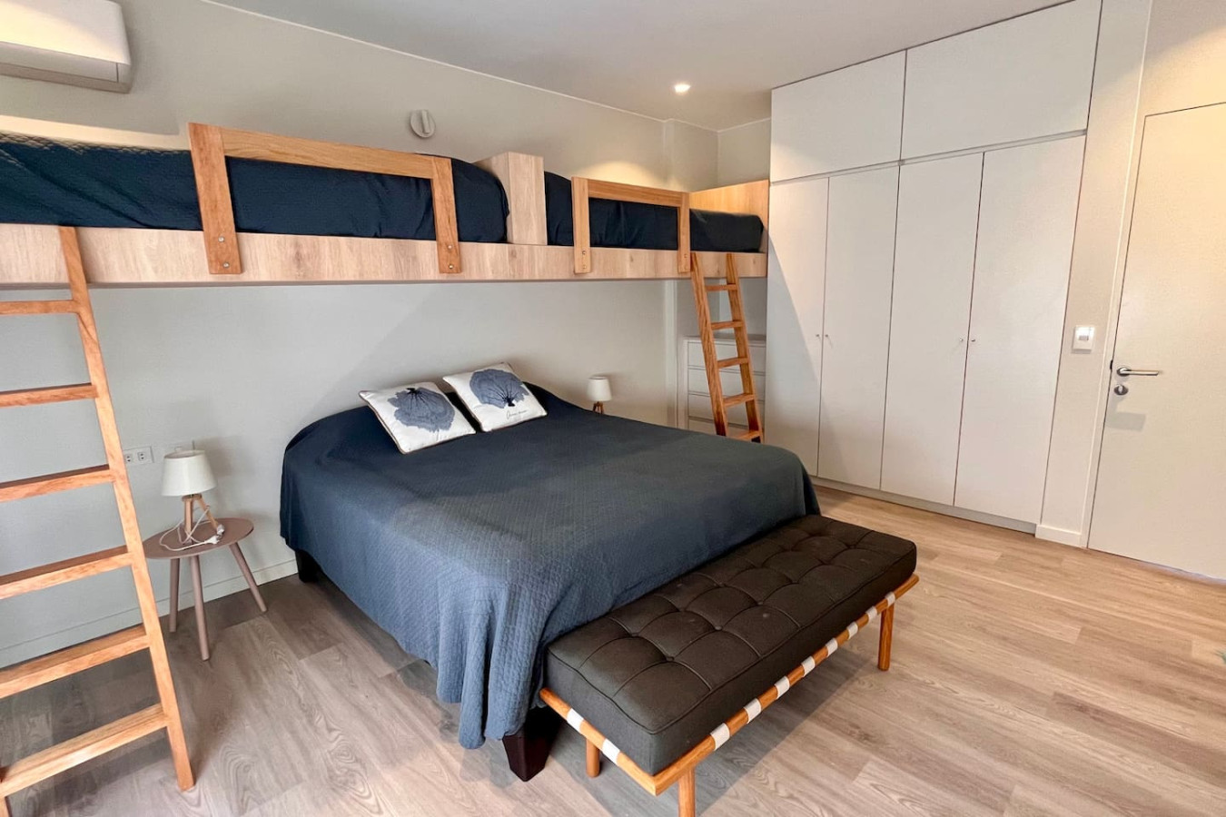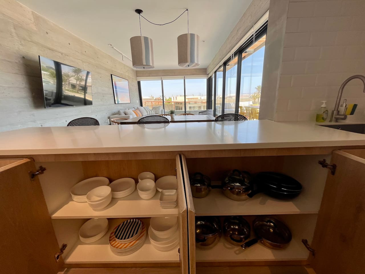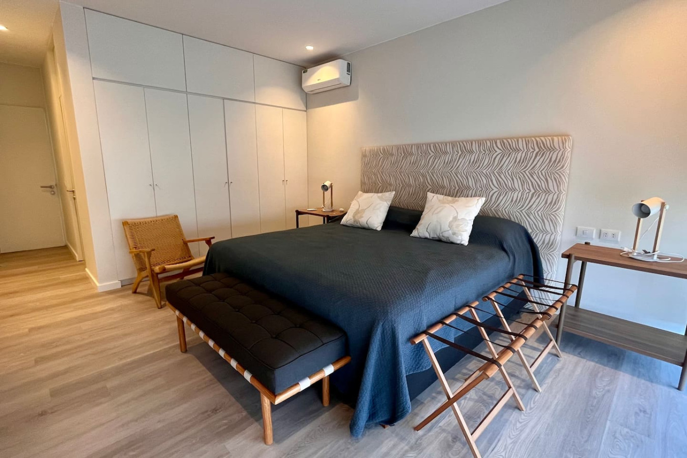 / nightBuilt in 2023, this brand new unit is a gem because if its giant terrace corner terrace with open windows bringing the desert and ocean vibes inside. One of the largest condos in the building, this unit can comfortaby fit up to 9 adults, or 11 people including the service room. Time to gather the fam and head to Paracas! It is also located at Kite Club Paracas, which offers guests full access to shared amenities including: a gym, lagoon, shared swimming pools and coworking space. The living room and terrace are huge, and connect the indoor and outdoor space for ease of BBQing and relaxing to watch the incredible sunsets. The main bedroom has a King bed + ensuite bathroom, the second bedroom offers a Queen bed and two individual beds, and the 3rd bedroom has a double bed and a single bed in addition to its ensuite bathroom. The maid's quarters can be used for a nanny or for kids, it does have a toilet and shower but please note this space is not accommodating for 2 grown adults, which is why we limit the occupancy to 9 adults max. The unit is located on the second floor, in a corner space, closest to the ocean. It had top furnishings and special attention to detail. From April 15, 2024, to April 15, 2025, there will be a construction project taking place within the condominium. While there may be some noise during business hours, all common areas will remain fully accessible. To thank you for your patience, we are offering a special discounted rate during this period. We appreciate your understanding!