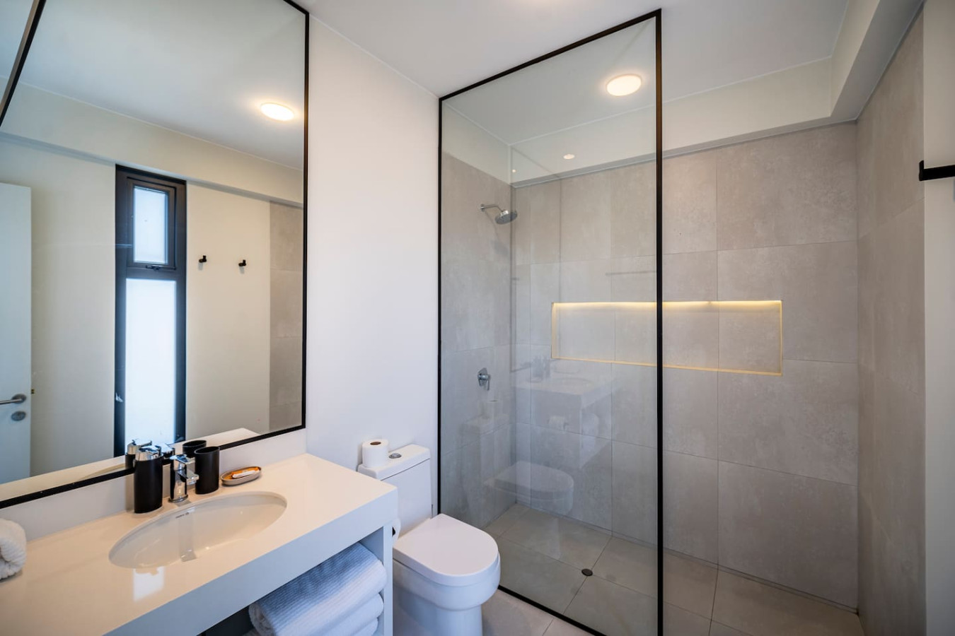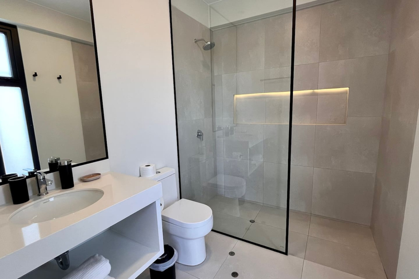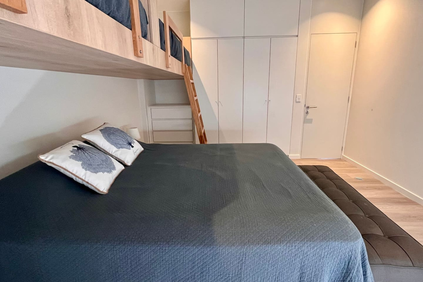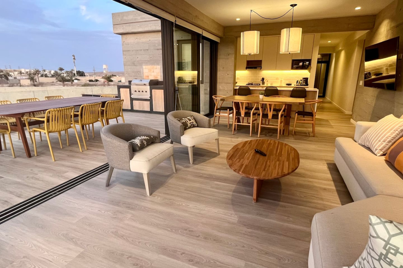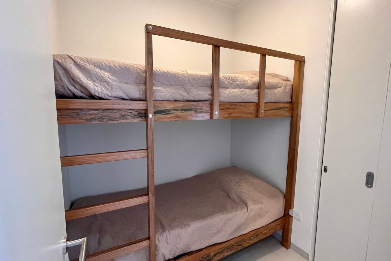 / nightBuilt in 2023, this brand new unit is a gem because if its giant terrace corner terrace with open windows bringing the desert and ocean vibes inside. One of the largest condos in the building, this unit can comfortaby fit up to 9 adults, or 11 people including the service room. Time to gather the fam and head to Paracas! It is also located at Kite Club Paracas, which offers guests full access to shared amenities including: a gym, lagoon, shared swimming pools and coworking space. The living room and terrace are huge, and connect the indoor and outdoor space for ease of BBQing and relaxing to watch the incredible sunsets. The main bedroom has a King bed + ensuite bathroom, the second bedroom offers a Queen bed and two individual beds, and the 3rd bedroom has a double bed and a single bed in addition to its ensuite bathroom. The maid's quarters can be used for a nanny or for kids, it does have a toilet and shower but please note this space is not accommodating for 2 grown adults, which is why we limit the occupancy to 9 adults max. The unit is located on the second floor, in a corner space, closest to the ocean. It had top furnishings and special attention to detail. From April 15, 2024, to April 15, 2025, there will be a construction project taking place within the condominium. While there may be some noise during business hours, all common areas will remain fully accessible. To thank you for your patience, we are offering a special discounted rate during this period. We appreciate your understanding!