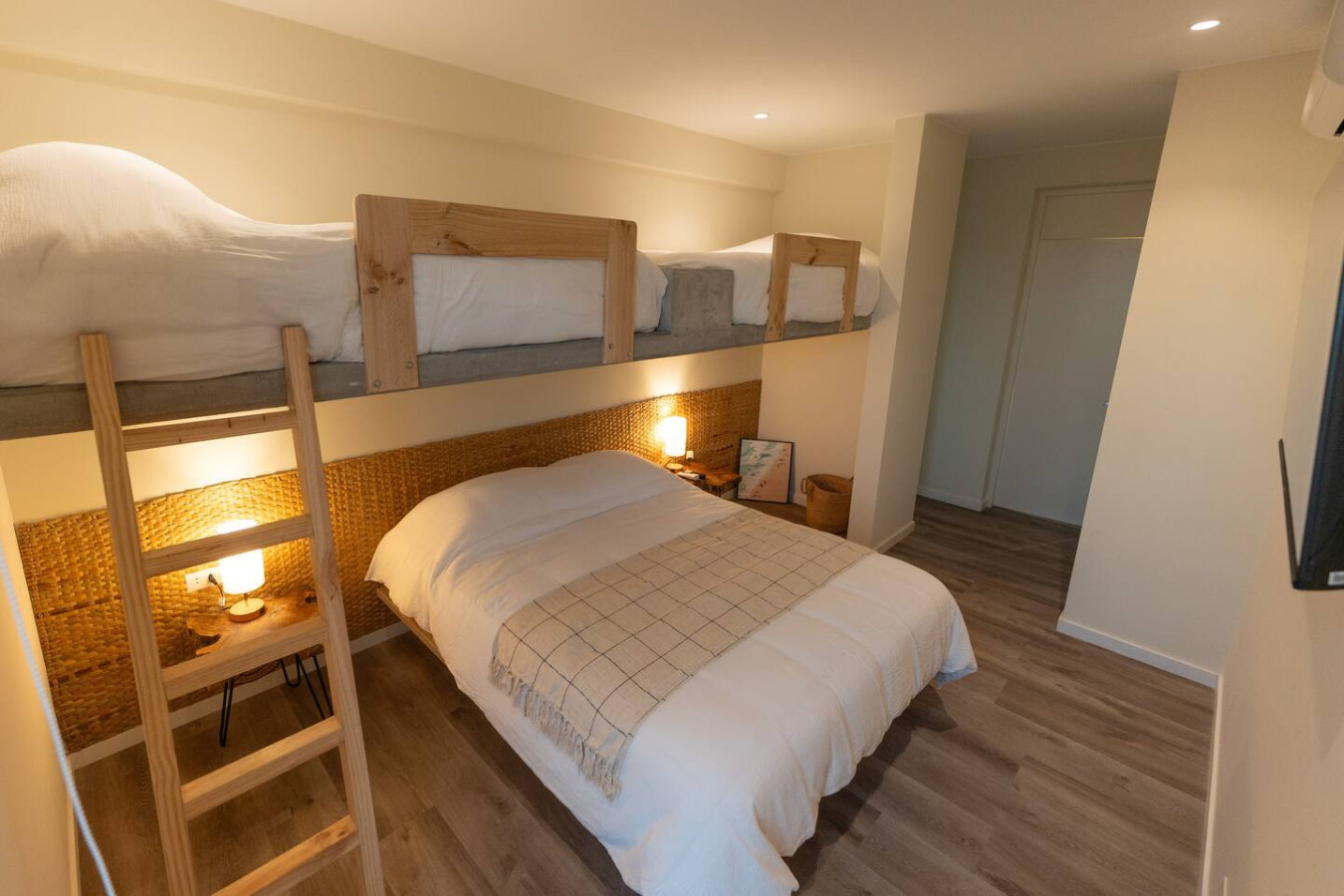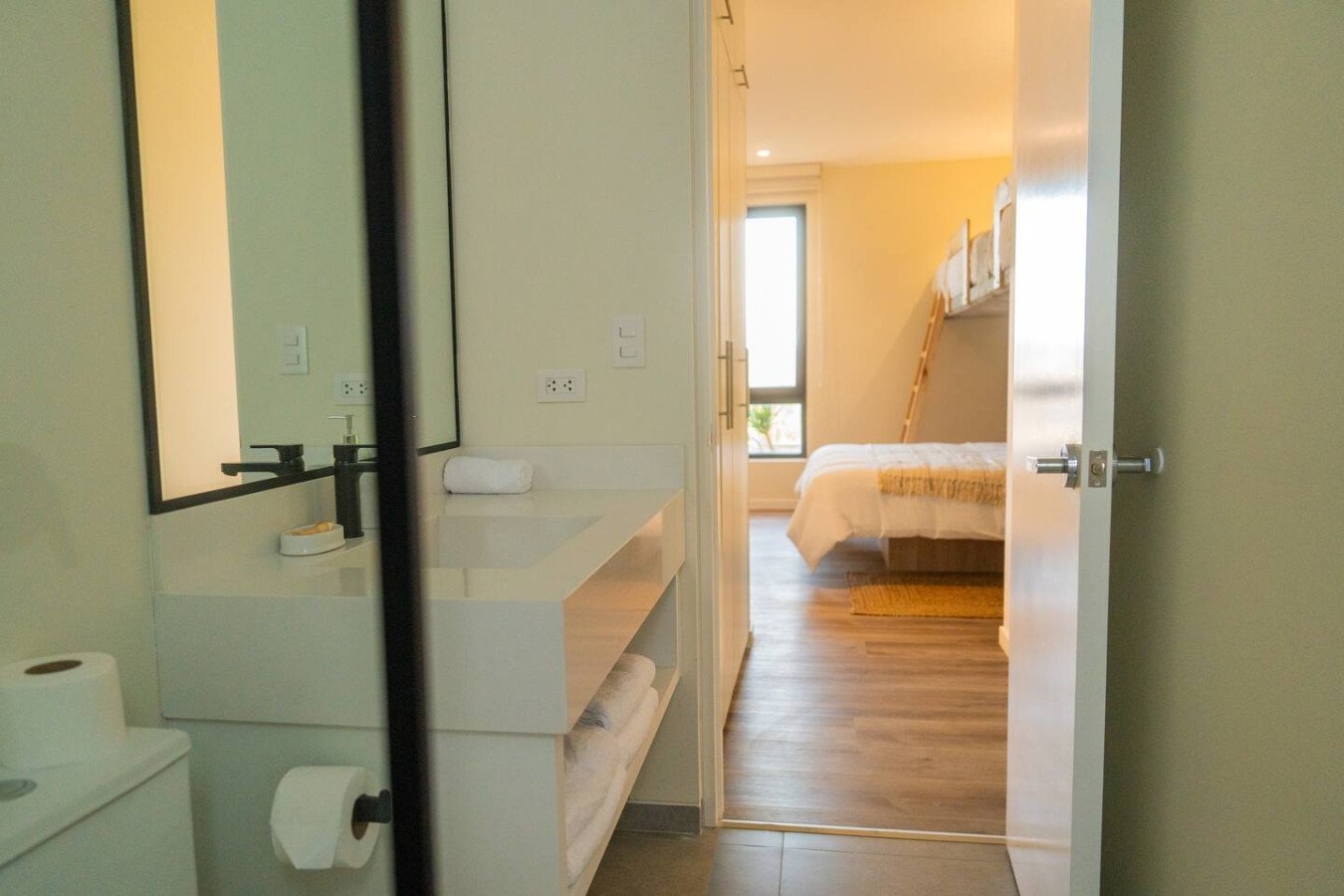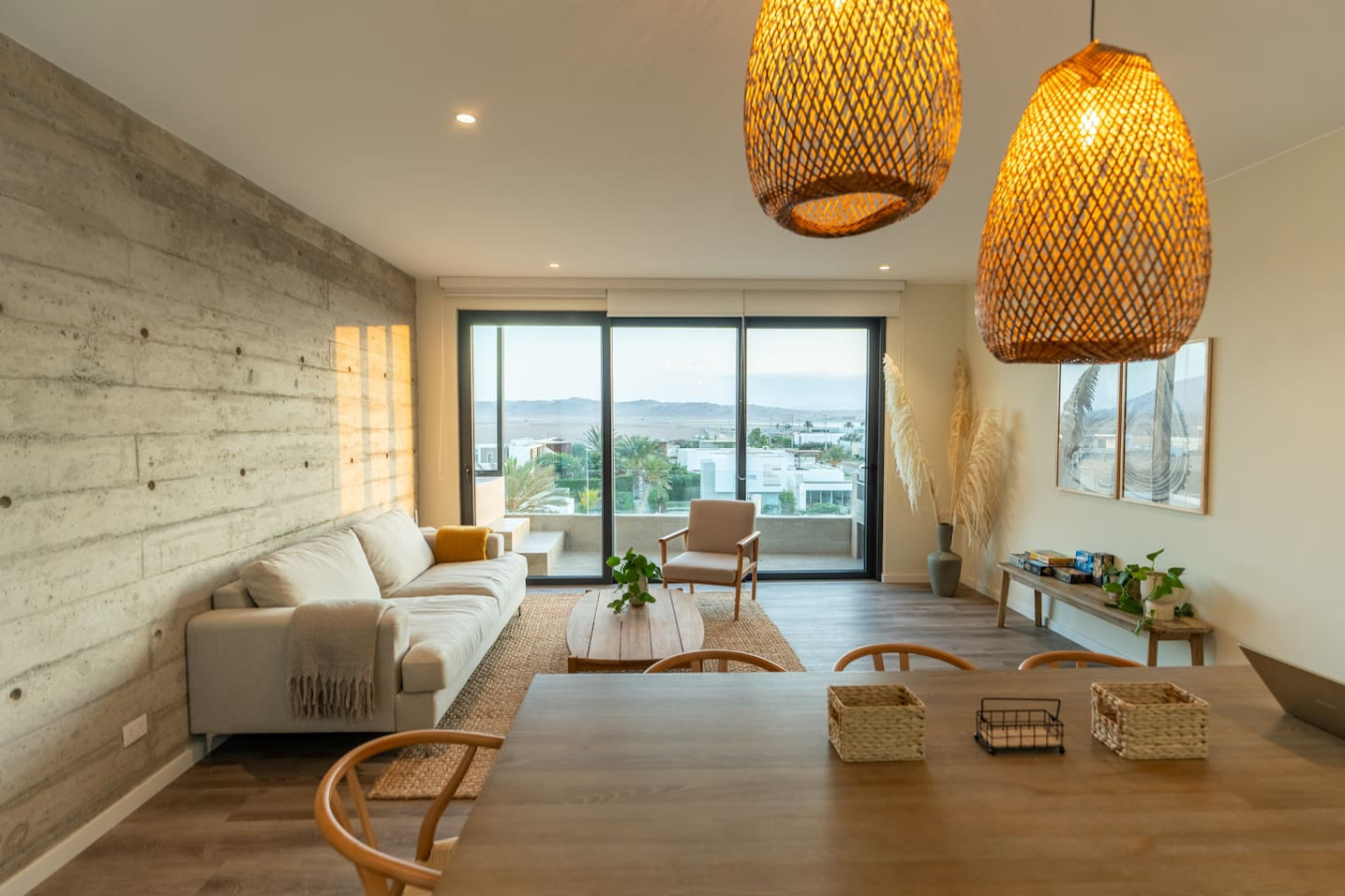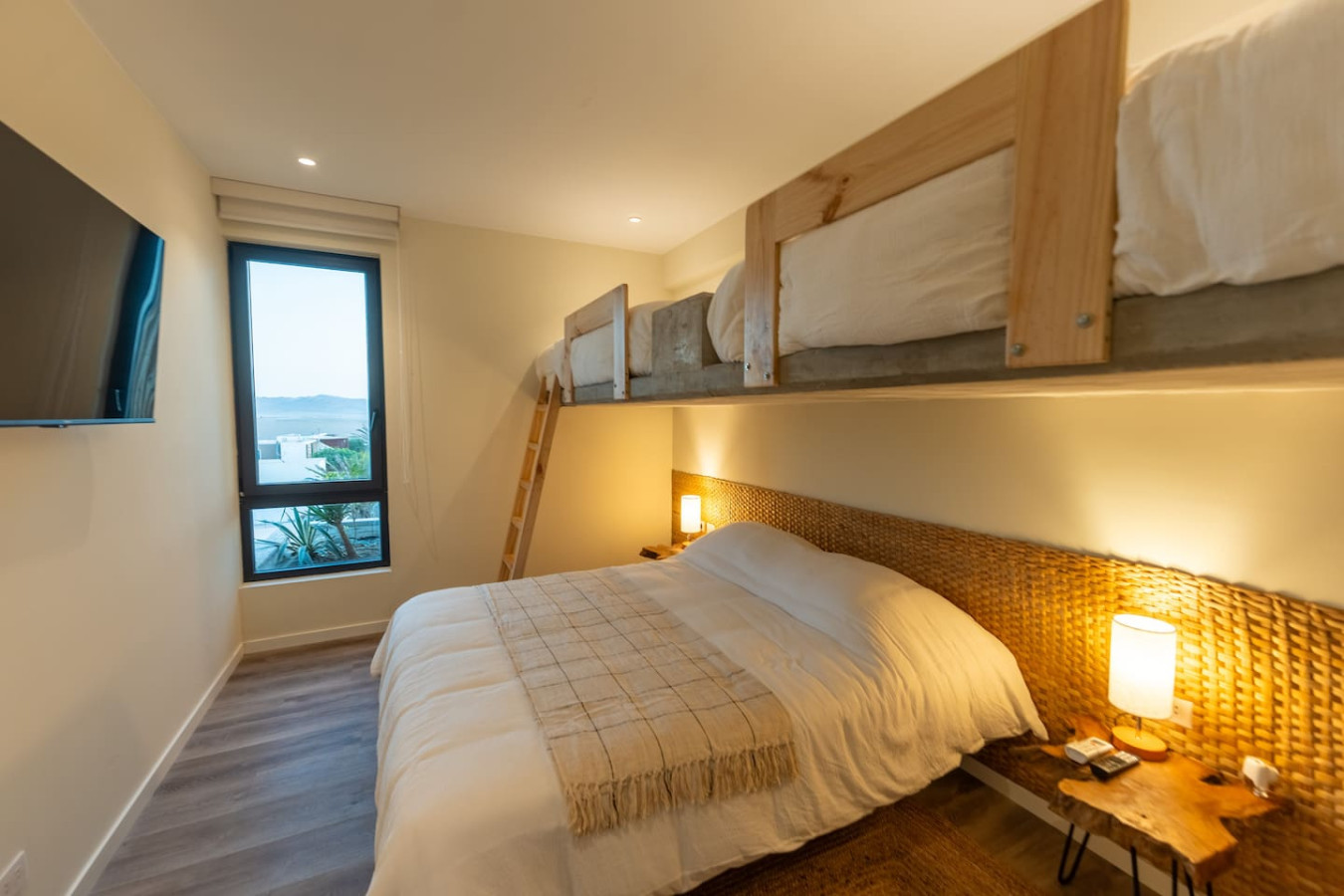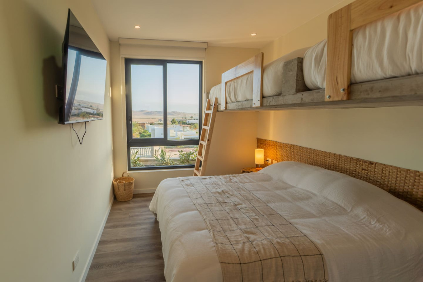 / nightLocated in the modern condominio Navigare Paracas, this stylish top-floor apartment offers sweeping views of the bay and the Paracas National Reserve. Enjoy the calm of the desert and the energy of the ocean from your private terrace and pool. Perfect for families, couples or kitesurfers, the space blends comfort, design, and nature for an inspiring stay. π Brand-new top-floor apartment in a private condo π Direct view of Paracas Bay + epic sunsets π Sleeps up to 8 guests: β’ 2 queen beds β’ 2 twin-sized bunk beds π 2 en-suite bedrooms π½ 1 guest toilet π½ Fully equipped kitchen with breakfast bar πΊ 50" Smart TVs in both bedrooms βοΈ Air conditioning in rooms πΆ High-speed Wi-Fi π§Ί Washer-dryer π₯ Grill on the terrace π Private pool with ocean view π Free parking Guests have full access to the apartment, private terrace with pool, and all Kite Club amenities: gym, coworking space, pool, and saltwater lagoon. Entry is self check-in via a secure key system. Weβre available to assist before, during, and after your stay. We speak Spanish, English, and French Santo Domingo is the relaxed, sports enthusiast area of Paracas. The center of Paracas is more touristy, but in Santo Domingo, you have easy access to the ocean for kitesurfing and to the nature reserve, la Reserva, for running and biking. We are a 5min drive from the center of Paracas, or 40min walk. We also provide contacts of taxis and moto taxis β οΈ The pool is on the terrace and does not have a safety fence, so its use is the full responsibility of the guests. We recommend close supervision, especially with children. πΎ Pets are allowed. Please keep them on a leash inside the condo premises. Any issues with pets are the guestβs responsibility. π We also offer personalized tips for activities, tours, restaurants, and taxi or mototaxi services to get around Paracas easily.